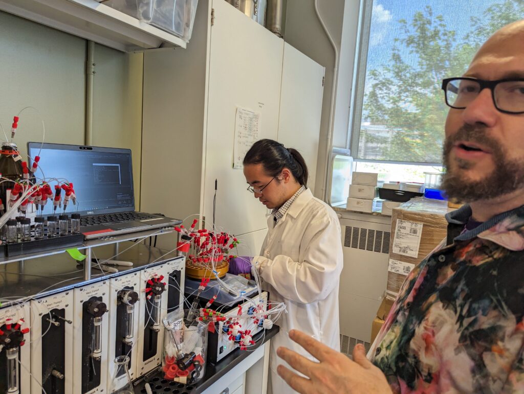 The Aspuru-Guzik group is equipped with unique self-driving chemical synthesis infrastructure including chemical reactors, robotic manipulation, in-situ characterization, etc.